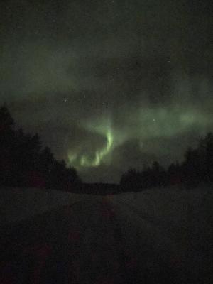 Nach dem Essen, einigen Runden Jenga, 50 Mal Vorhersagen checken (Bens App sagt einfach immer 0%), und ganz ganz vielen Schichten anziehen, haben wir dann beschlossen, gegen 9 Uhr rauszufahren, um Nordlichter zu ?jagen?. Zum Glück!