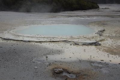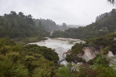 Mittags hab ich mich dann auf den Weg nach Wai O Tapu gemacht, um mir die verschiedenen heißen Quellen anzugucken. Leider war das Wetter sehr bescheiden – wie die nächsten vier Tage - , aber das Wetter gehört immerhin zur Natur und ich wollte Natur pur!