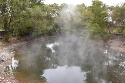 Am 02.01 habe ich dann die andere Hälfte von Rotorua erkundet und bin auf den Underdog der Stadt gestoßen. Der Kuirau Park ist 10 Minuten vom „Zentrum“ entfernt und war einer meiner Highlights. Auch dort war der Gestank wieder sehr intensiv und meine Kopfschmerzen waren nun schon zwei Tage anhaltend.
