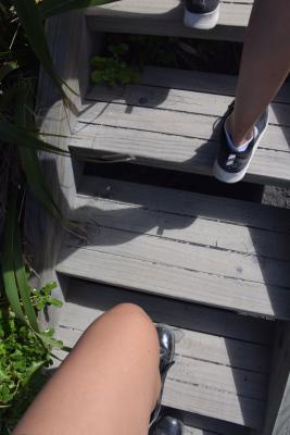 Wir wurden dann auch wieder im Wasser abgesetzt, weshalb wir am Strand mit nassen Hosen ankamen. Dort stellte ich erstmal auf der Schaukel mein Topmodel Potenzial unter Beweis. Diese gestreckten Füße! Mama war auch nicht schlecht...