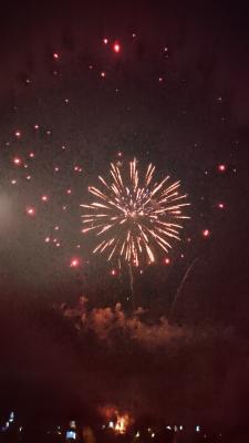 Kurz vor Mitternacht machten sich dann alle im Gänsemarsch auf den Weg zum See und dann ging der Countdown los und es kam kein Feuerwerk. Zwei Minuten später erklang dann ein neuer Countdown aus Lautsprechern und diesmal ging danach auch ein Feuerwerk los. Man könnte sich jetzt streiten, ob wir zu früh waren oder die Veranstalter zu spät. Nach Umarmungen mit Leuten, die ich 2 Stunden früher kennengelernt habe und 'Happy New Year'-Nachrichten nach Deutschland mit 'Du bist 12 Stunden zu früh'-Antworten haben wir dann das mega coole Feuerwerk und das brennende Schiff bewundert. Als dann das Feuer auf dem Schiff gelöscht war und alle langsam nach Hause gingen, haben wir uns ans Ufer gesetzt und weiter geredet und getrunken und Fremde wie mit einem Magnet angezogen, so dass wir irgendwann eine echt große Runde waren.